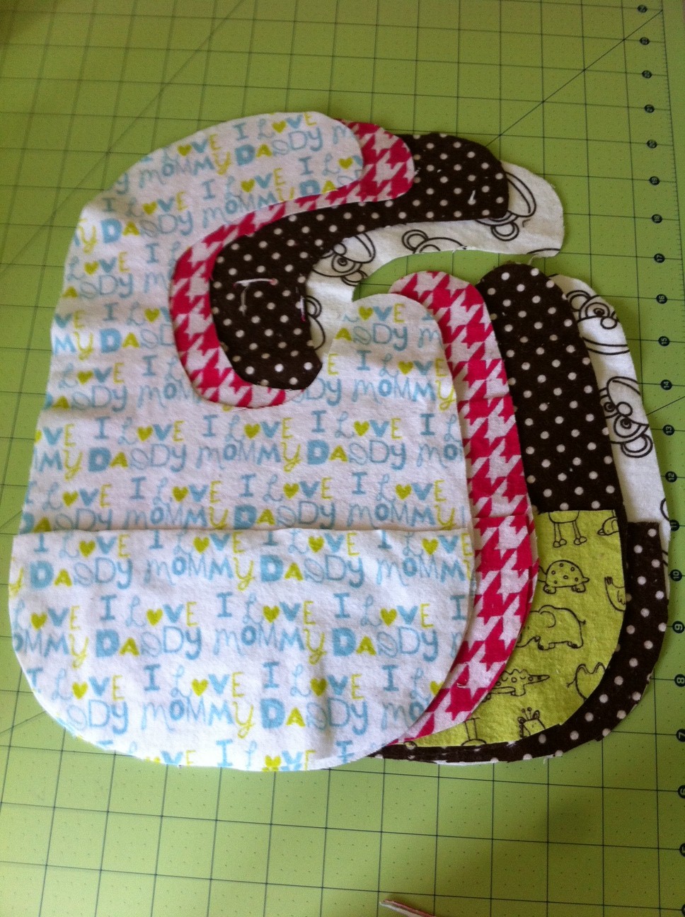 I should have done more preparatory work if I wanted to end up with finished products every day, but I’m happy with the progress I’m making. I hope by the end of the week to have finished off quite a few projects. I am making multiples of most items because I find that it takes only a little more time to make 4 bibs than 1 bib.