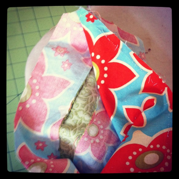 Lest you think my sewing experiences are all happy ones, this is what happens when you are in a hurry and trying to finish before nap time ends- pillow front sewn wrongside to pillow back…enter seam ripper. Oh well, such is the life of the sewist.