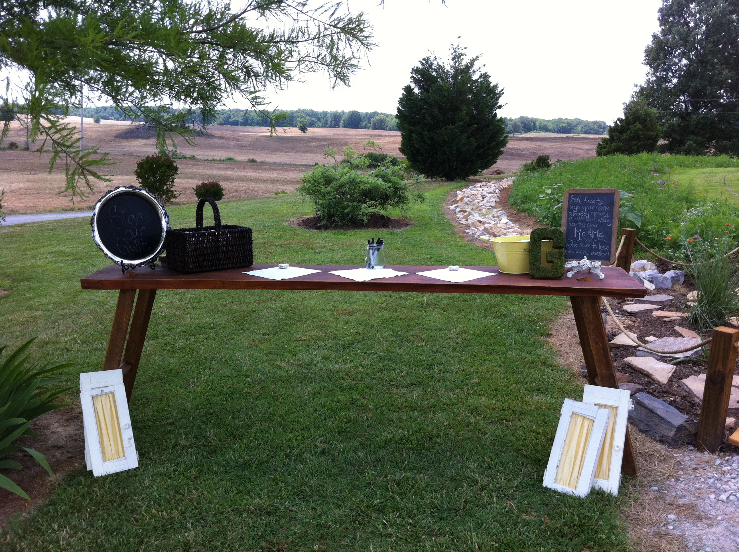 - Bring your stack of fabrics plus markers to the guest book table at the wedding. I used both sharpies and fabric markers and found sharpies to be easier to write with.