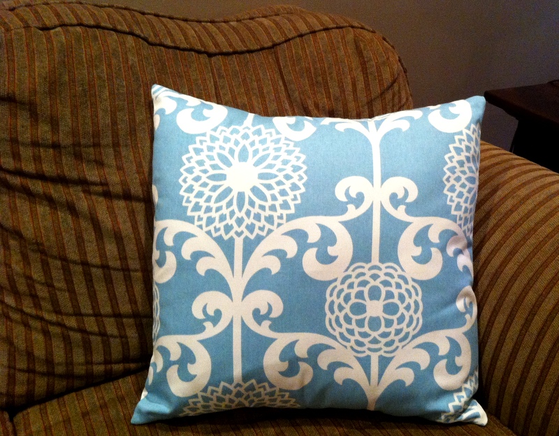 Yesterday I finished a quick project that I want to share with you. My mom had picked out some fabric for new pillows, and I have let it languish around my craft room for a few weeks. Once I actually sat down to make the pillows yesterday, they came together so quickly that I wondered why I took so long to begin them! I made simple square 20″ pillows with an envelope back and I used this tutorial from Sew, Mama, Sew to figure out how wide to make the back panels. It’s a great resource to have when you are making pillows! The change I made is to cut my pillows the same size as the insert (20″ in my case) and sew with a 3/8″ seam so the fabric fits nice and snug on the pillow form. The fabric is a Waverly upholstery print we picked up at Jo-Ann’s. The stiffness of the upholstery weight makes ironing over the inside seams so easy and they sew together beautifully! I really liked how professional the pillows looked when finished. The print and color matches perfectly with my mom’s living room and adds some needed pizzazz. Now I want to buy some more upholstery fabric and make myself new pillows! But first I must redo some other pillows I made for my mom a while back that turned out kinda rough…We used old pillow forms which were not square and it ended up being a rumpled mess with ill-fitting buttonholes. I will take a before and after shot of these so you can see the difference. Hopefully, it won’t take me another 3 weeks to finish them! 🙂