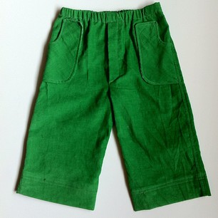 the fabric: Pants: Green corduroy I picked up at my big Joann’s trip a few weeks back in anticipation of KCWC. I’ve been wanting to make Oliver green pants for a while! Tee: A favorite old t-shirt of mine that has been too small for quite a while but I just couldn’t part with it- nerd, anyone? 🙂