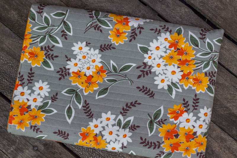 I used the ipad cover tutorial over at One Shabby Chick to get an idea for the construction, then tweaked the dimensions to fit my 13” macbook air laptop. I did not do the flap at the top that she suggests. The case has a two layers of batting (one on exterior and one on interior fabric) and interfacing on the exterior fabric so it is a nice, sturdy sleeve. I also did straight line quilting on the exterior pieces to keep the fabrics in place.