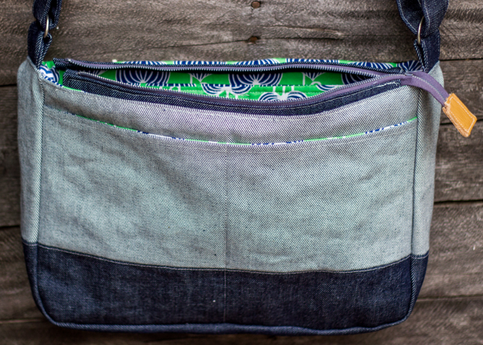 denim messenger (5 of 6)I knew he would like this messenger bag and could use it for work, but I would need to re-think it in more manly terms. I decided to use this heavy weight denim as the accent fabric and had a lightbulb moment when I realized I could use the wrong side of the denim for the main fabric. I wasn’t sure exactly how it would turn out but as soon as I got the flap sewn together, I knew this was going to be a winner! I just love the end result and it’s exactly my husband’s style.denim messenger (4 of 6)