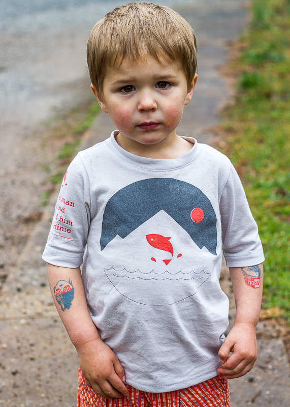 In keeping with our mini-me theme, the shirt is an old t-shirt of Ian’s that had gotten too small for him after many washings. Mini-me in my case will most likely equal mini-husband (that’s ok, right?). I sized up my trusty