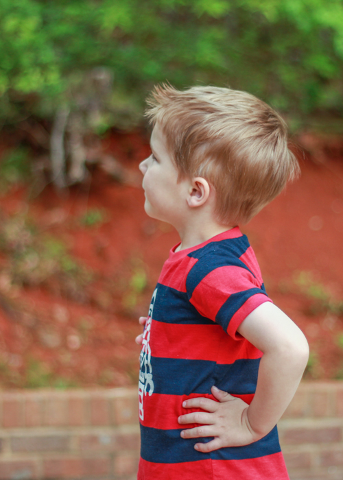 The masks are made from two layers of felt cut out with a layer of craft fuse in between for durability. It’s my first mask-making experience so they’re not perfect, but the boys actually wanted to keep them on for most of the photo shoot so I consider that a win. Maybe they’ll actually be worn for trick or treating. Plus it just makes this outfit tie in so well with the Kid’s Clothes Week disguise theme. Eliot’s mask is a template that I got here. Oliver’s I just winged from some pics I found.