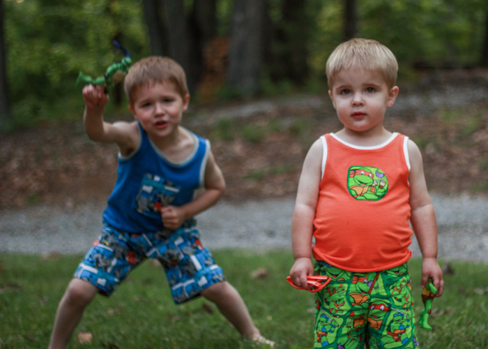 The pants I’m super in love with. I used the Fancy Pants leggings pattern in a size 2 and 4. I just love how their little legs look in fitted leggings- especially Eliot’s leg rolls… all the heart eyes. Though FYI Eliot is wearing a cloth diaper in these pics so he’s got a little more bulk down there than you would see with a disposable. I don’t like to make costumes for just one night so I’m glad these ended up super comfy so that they can be pjs once Halloween is over. Or regular clothes too… you never really know how they will end up in rotation. As long as they’re worn, I don’t care!