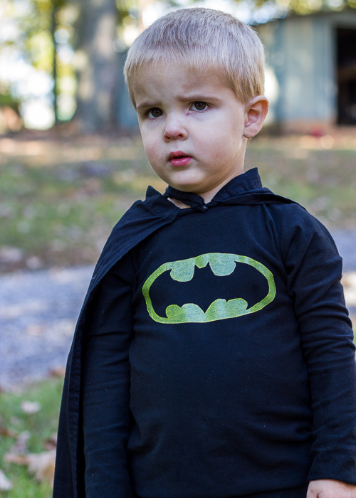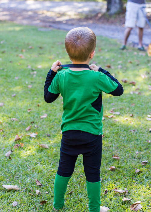 I started asking the boys about a month ago what they wanted to be for Halloween this year. At first I was kind of hoping for another star wars run, but that seemed almost cliche with the movie coming out in December. And they both wanted to be superheroes this year. There was a bit of argument over who got to be Batman, but Eliot won that when Oliver landed on Green Lantern as his persona. Which is kinda funny because I know nothing of Green Lantern. A few months ago, I picked up a superhero board book for the boys and it’s kind of a dictionary of each of the Justice League members and what they do…that was our first introduction to Green Lantern. Oliver decided he wanted to be him so that he could have the ring- whatever works, I guess.
