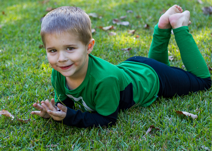 Both of the boys are wearing Flashback Tees. Oliver’s tee is a 4 and Eliot’s a 3. I used Laguna jersey in Onyx and Grass. Eliot’s was a super simple all-black outfit with a freezer paper stenciled logo. Oliver’s required a bit more thought. I did a lot of google searching Green Lantern costumes and they all had this side inset of black along with the angled black lower sleeve. The triangle shirt insets took me a little more brain power than I’d like to admit, and I’m not sure they were 100% succesful- they should have been a bit bigger. But Oliver loves it so that’s really all that matters. FYI I mixed glow in the dark paint into the mix for both logos so both shirts actually glow in the dark- pretty awesome. And that will be super fun on Halloween night.