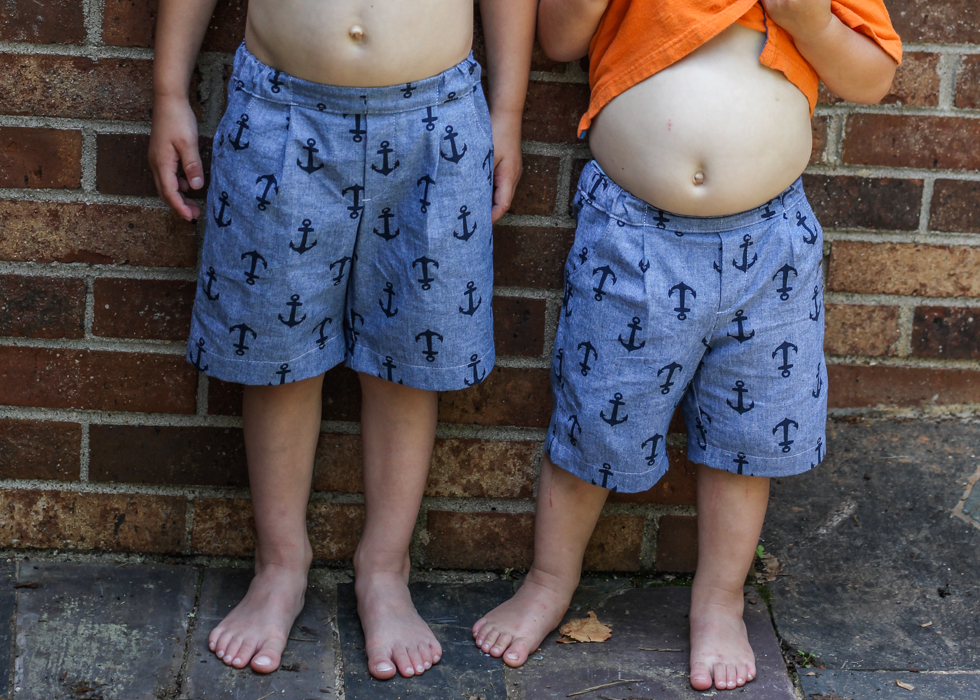 This is an Oliver+S Sketchbook shirt (guess I was on a roll with that pattern) in a size 2T for Eliot. Timing wise this worked out well for me because I made Oliver a sketchbook shirt in 2T last spring for Vintage May (blogged here) and so all the pattern pieces were traced out already. Woot! This shirt is about as complicated as the shorts are easy so it was a huge bonus to have the pieces traced- about 7 or 8 of them in total, I think.