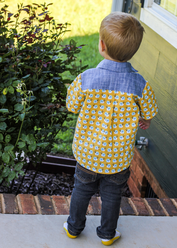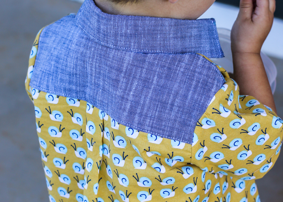 I was just going to make the shirt straight snails, but as I was cutting it out I had the idea to add some chambray for a bit of contrast. The chambray used is double cloth and quite a nice weight (cannot for the life of me find a link to the exact fabric-sorry)! I wavered back and forth on exactly what pieces to make contrasting and ended up going with the collar, yoke and pockets in the chambray. I posted a picture of my progress on Instagram and was blown away by how much love this little shirt got. Thanks to all my IG friends for bolstering my confidence because I had a moment of self doubt as to whether the final project was actually any good or not. Love my supportive IG community!!