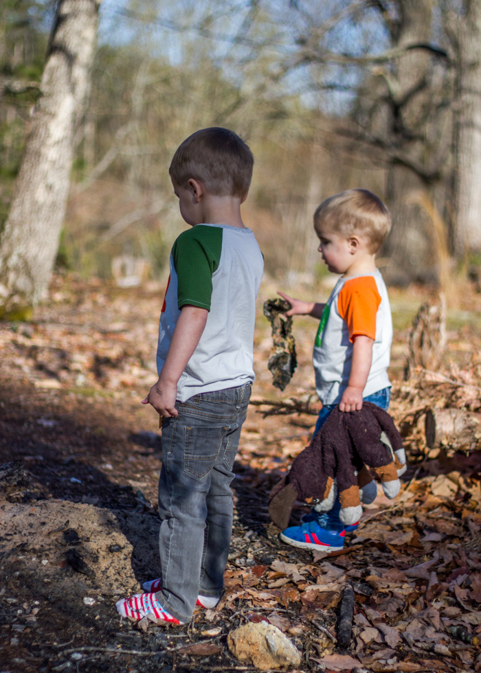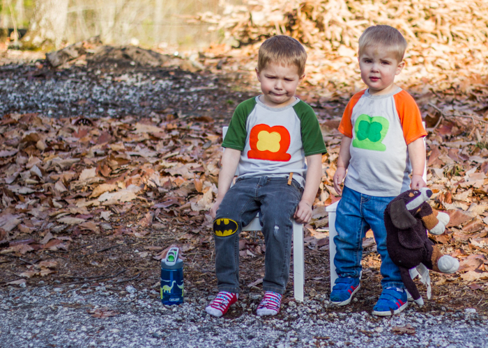 The pattern I used for the tees is a version of a raglan tee that I tested a while back for Titchy Threads. The pattern has not been released yet so I don’t have a link of it for you, but I’m pretty sure she’s planning on releasing sometime this year. I actually made the same size for both boys- the 24 month and just added 1.5″ to the length of Oliver’s. O’s ended up a teensy bit short so I left the bottom of his unhemmed.