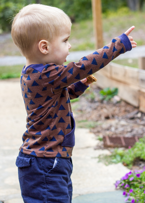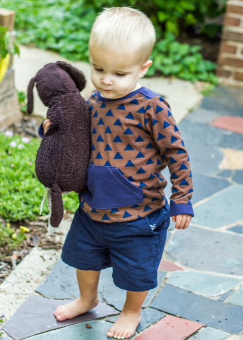 I definitely think that this pattern is a basic that everyone needs in their portfolio, if just to have some fun variations on the basic t-shirt. Laura does a great job both on her pattern instructions and in the pattern sizing. You can go buy it here if you are interested. FYI if you sign up for her newsletter, she will be sending out a special discount code for this pattern. I love the fit of this tee on Eliot. And so does he even though he looks fairly serious in these pictures. He takes his modeling job very seriously these days. 🙂