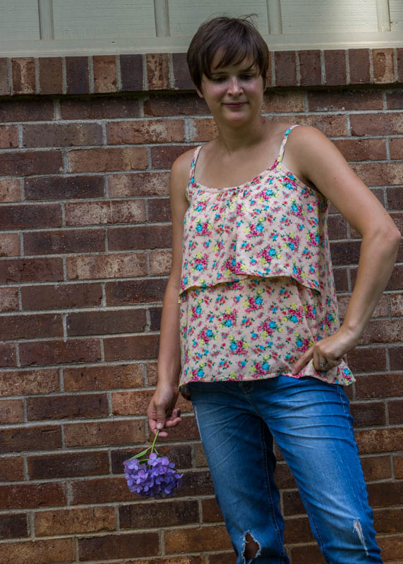 My one beef with this pattern is the shorts’ inseam. My cuff fits kinda funky- it rides up on the inseam and hangs lower on the outseam. And not in a cute way- it looks a little awkward. I even checked the pattern pieces to make sure I hadn’t sewn them backwards but I did sew them correctly. I must have made some sort of mistake though because I’ve searched other bloggers who made these shorts and none have mentioned this problem. I’m also really sensistive when it comes to seams touching my skin and I feel like the inseam is a little bulky and bothers me. I’ve had this problem when I’ve made the maritime shorts in a heavier fabric so it must just be me. The fit across the bum and hips is pretty perfect though so next time I make them, I think I just need to grade more of the seam allowance out of the inseam and stitch it down to keep it from bothering me. I’m trying to decide if I need to lengthen the crotch just a bit too. I will also raise the waistband just a teeny bit as I like my shorts to sit just a bit higher on my waist- after two babies, I’m not such a fan of low riders. lol.